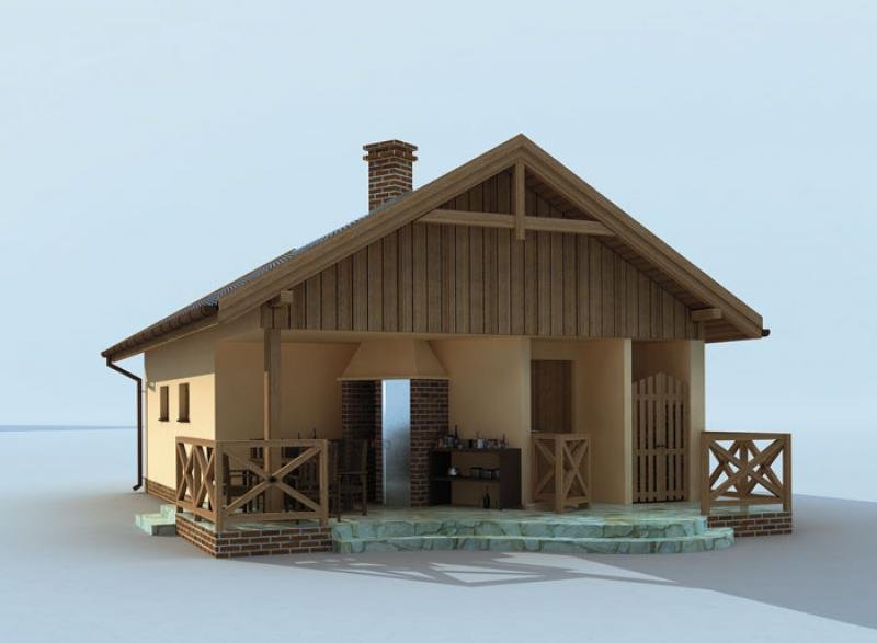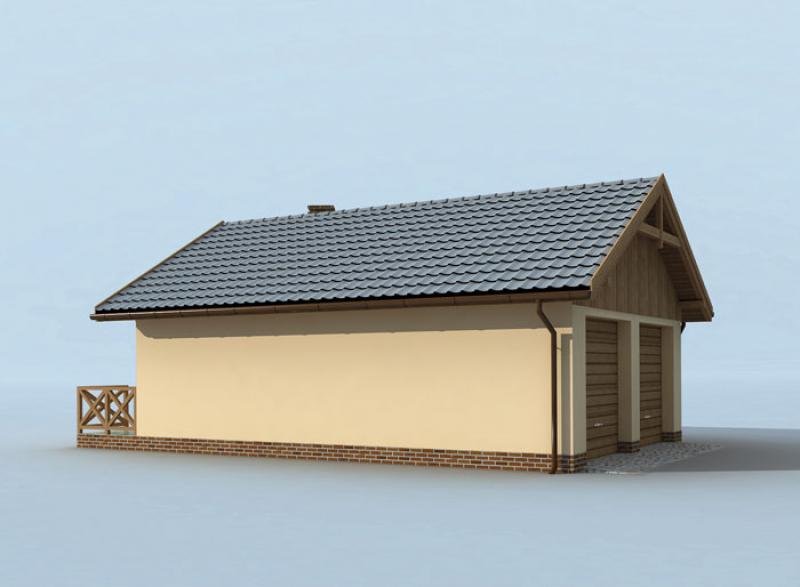 Budynek gospodarczy, wolnostojący. Projekt składa się z części architektonicznej, konstrukcyjnej i wewnętrznej instalacji elektrycznej. W projekcie załączone są podstawowe zestawienie stali, drewna i stolarki okienno-drzwiowej. Do projektu dołączamy bezpłatną zgodę na wprowadzenie zmian, oświadczenie projektantów o wykonaniu projektu zgodnie z obowiązującymi normami i przepisami oraz kserokopie uprawnień projektantów wraz z aktualnym wpisem do izby. W przypadku zamówienia projektu w technologii lekkiej, drewnianej konstrukcji szkieletowej, powierzchnia użytkowa budynku jest o około 7% większa.