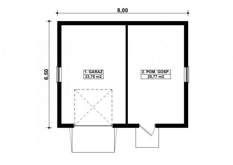 Projekt garażu jednostanowiskowego, parterowego, niepodpiwniczonego, przeznaczonego dla samochodów osobowych z pomieszczeniem gospodarczym.