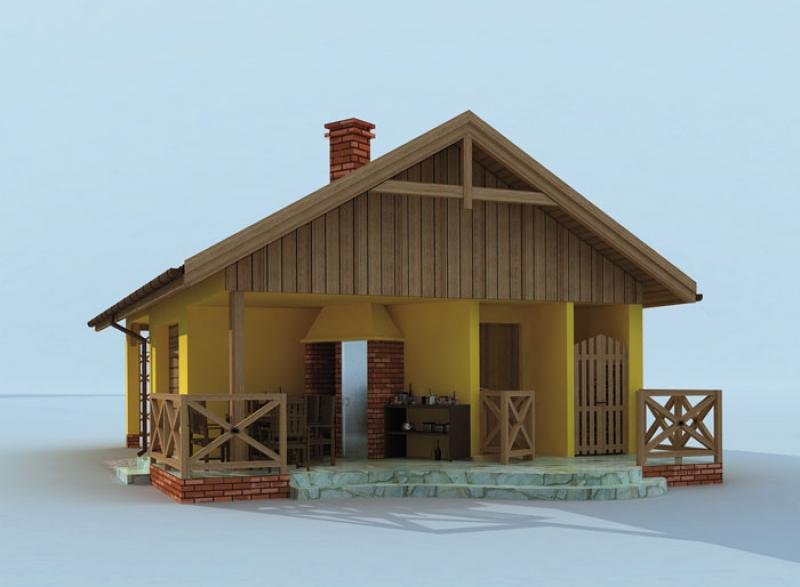 Budynek gospodarczy, wolnostojący. Projekt składa się z części architektonicznej, konstrukcyjnej i wewnętrznej instalacji elektrycznej. W projekcie załączone są podstawowe zestawienie stali, drewna i stolarki okienno-drzwiowej. Do projektu dołączamy bezpłatną zgodę na wprowadzenie zmian, oświadczenie projektantów o wykonaniu projektu zgodnie z obowiązującymi normami i przepisami oraz kserokopie uprawnień projektantów wraz z aktualnym wpisem do izby. W przypadku zamówienia projektu w technologii lekkiej, drewnianej konstrukcji szkieletowej, powierzchnia użytkowa budynku jest o około 7% większa.