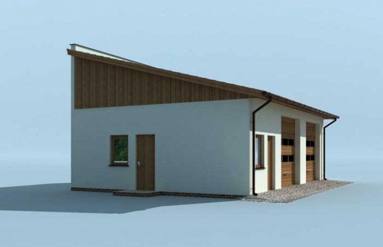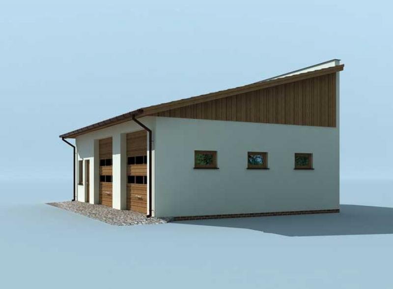 Budynek gospodarczy, wolnostojący. Projekt składa się z części architektonicznej, konstrukcyjnej i wewnętrznej instalacji elektrycznej. W projekcie załączone są podstawowe zestawienie stali, drewna i stolarki okienno-drzwiowej. Do projektu dołączamy bezpłatną zgodę na wprowadzenie zmian, oświadczenie projektantów o wykonaniu projektu zgodnie z obowiązującymi normami i przepisami oraz kserokopie uprawnień projektantów wraz z aktualnym wpisem do izby. W przypadku zamówienia projektu w technologii lekkiej, drewnianej konstrukcji szkieletowej, powierzchnia użytkowa budynku jest o około 7% większa.