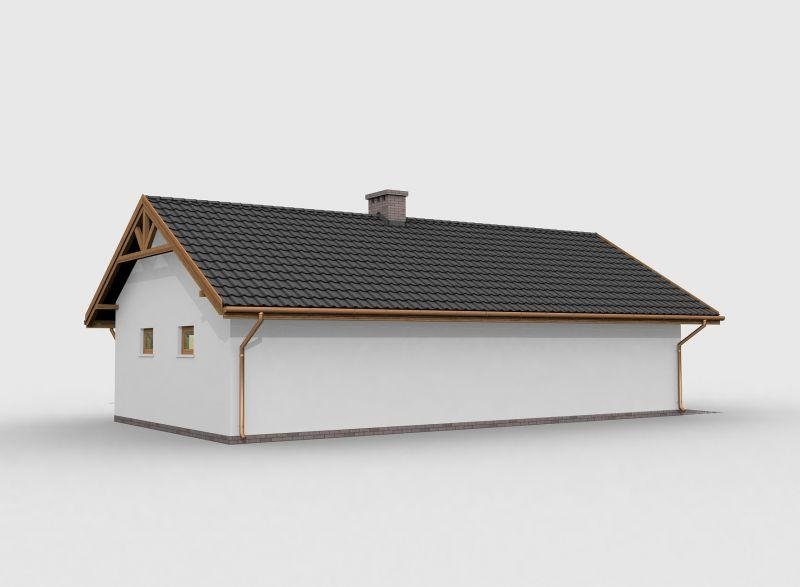 Budynek gospodarczy, wolnostojący. Projekt składa się z części architektonicznej, konstrukcyjnej i wewnętrznej instalacji elektrycznej. W projekcie załączone są podstawowe zestawienie stali, drewna i stolarki okienno-drzwiowej. Do projektu dołączamy bezpłatną zgodę na wprowadzenie zmian, oświadczenie projektantów o wykonaniu projektu zgodnie z obowiązującymi normami i przepisami oraz kserokopie uprawnień projektantów wraz z aktualnym wpisem do izby. W przypadku zamówienia projektu w technologii lekkiej, drewnianej konstrukcji szkieletowej, powierzchnia użytkowa budynku jest o około 7% większa.
