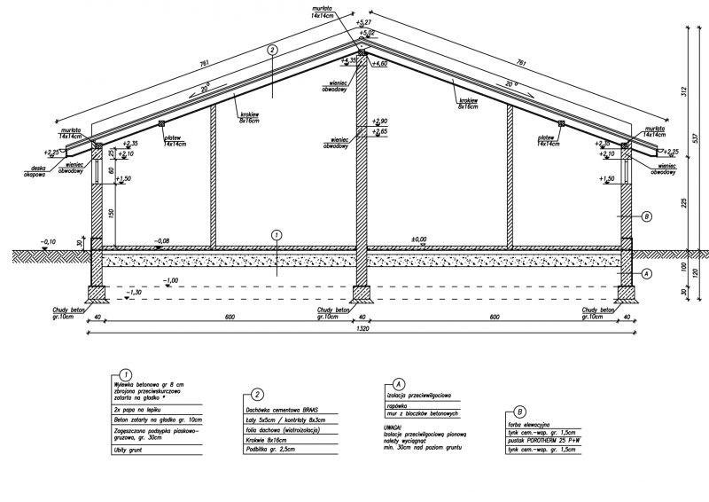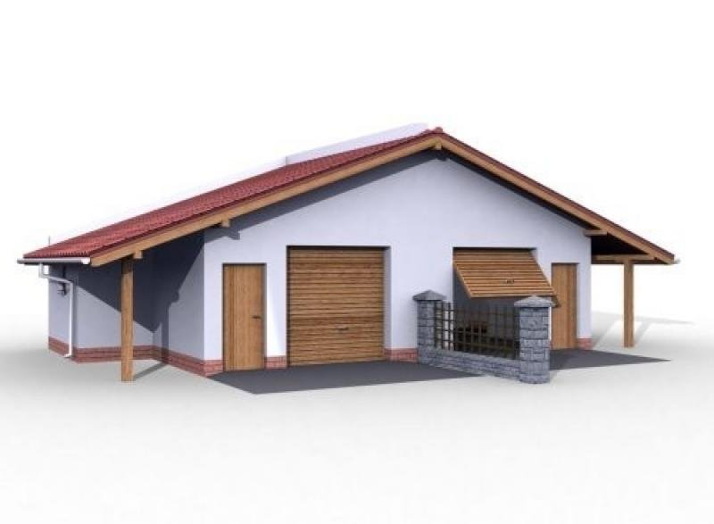 Budynek gospodarczy, wolnostojący. Projekt składa się z części architektonicznej, konstrukcyjnej i wewnętrznej instalacji elektrycznej. W projekcie załączone są podstawowe zestawienie stali, drewna i stolarki okienno-drzwiowej. Do projektu dołączamy bezpłatną zgodę na wprowadzenie zmian, oświadczenie projektantów o wykonaniu projektu zgodnie z obowiązującymi normami i przepisami oraz kserokopie uprawnień projektantów wraz z aktualnym wpisem do izby. W przypadku zamówienia projektu w technologii lekkiej, drewnianej konstrukcji szkieletowej, powierzchnia użytkowa budynku jest o około 7% większa.