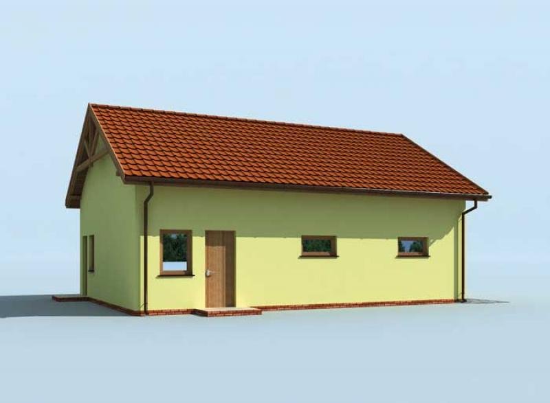 Budynek gospodarczy, wolnostojący. Projekt składa się z części architektonicznej, konstrukcyjnej i wewnętrznej instalacji elektrycznej. W projekcie załączone są podstawowe zestawienie stali, drewna i stolarki okienno-drzwiowej. Do projektu dołączamy bezpłatną zgodę na wprowadzenie zmian, oświadczenie projektantów o wykonaniu projektu zgodnie z obowiązującymi normami i przepisami oraz kserokopie uprawnień projektantów wraz z aktualnym wpisem do izby. W przypadku zamówienia projektu w technologii lekkiej, drewnianej konstrukcji szkieletowej, powierzchnia użytkowa budynku jest o około 7% większa.