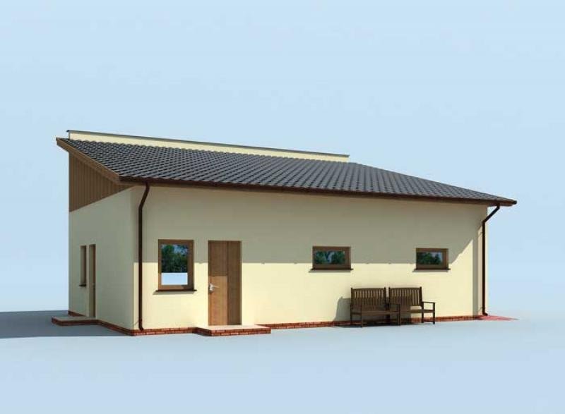 Budynek gospodarczy, wolnostojący. Projekt składa się z części architektonicznej, konstrukcyjnej i wewnętrznej instalacji elektrycznej. W projekcie załączone są podstawowe zestawienie stali, drewna i stolarki okienno-drzwiowej. Do projektu dołączamy bezpłatną zgodę na wprowadzenie zmian, oświadczenie projektantów o wykonaniu projektu zgodnie z obowiązującymi normami i przepisami oraz kserokopie uprawnień projektantów wraz z aktualnym wpisem do izby. W przypadku zamówienia projektu w technologii lekkiej, drewnianej konstrukcji szkieletowej, powierzchnia użytkowa budynku jest o około 7% większa.