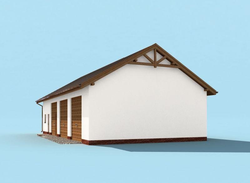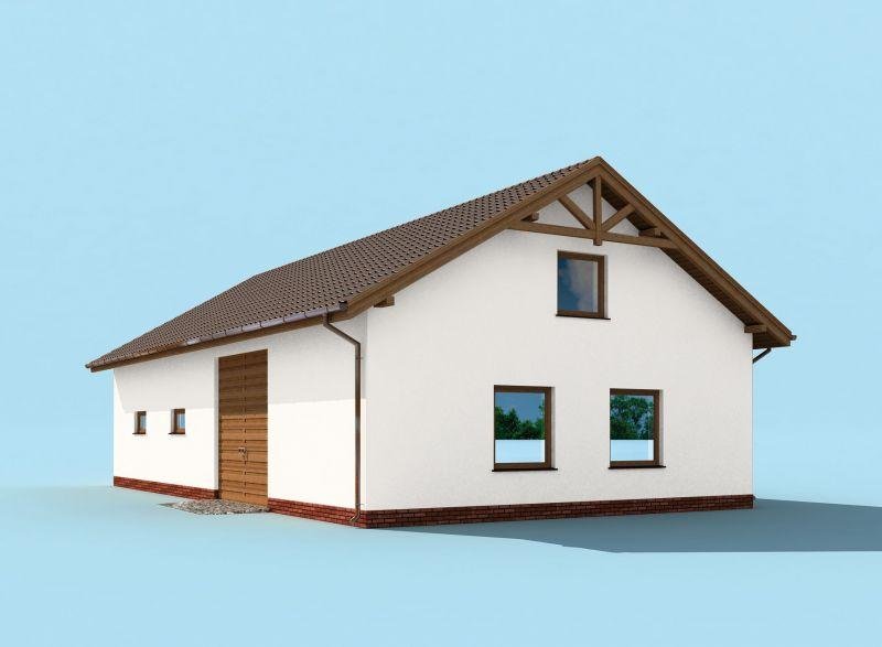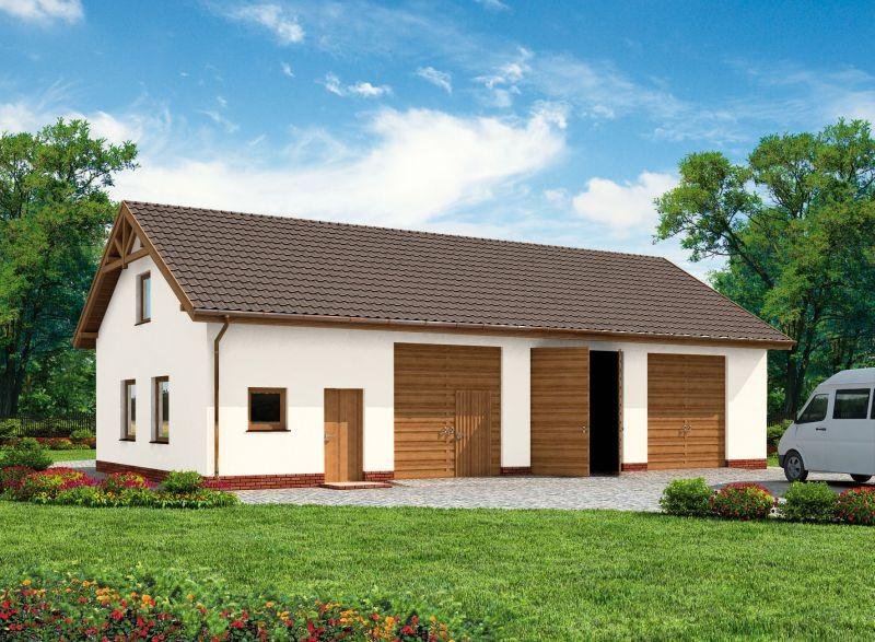 Budynek gospodarczy, wolnostojący. Projekt składa się z części architektonicznej, konstrukcyjnej i wewnętrznej instalacji elektrycznej. W projekcie załączone są podstawowe zestawienie stali, drewna i stolarki okienno-drzwiowej. Do projektu dołączamy bezpłatną zgodę na wprowadzenie zmian, oświadczenie projektantów o wykonaniu projektu zgodnie z obowiązującymi normami i przepisami oraz kserokopie uprawnień projektantów wraz z aktualnym wpisem do izby. W przypadku zamówienia projektu w technologii lekkiej, drewnianej konstrukcji szkieletowej, powierzchnia użytkowa budynku jest o około 7% większa.