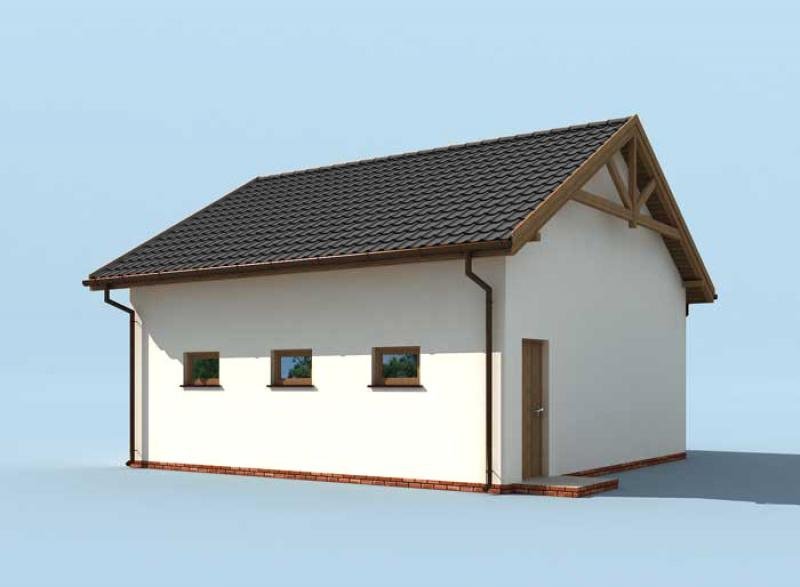Budynek gospodarczy, wolnostojący. Projekt składa się z części architektonicznej, konstrukcyjnej i wewnętrznej instalacji elektrycznej. W projekcie załączone są podstawowe zestawienie stali, drewna i stolarki okienno-drzwiowej. Do projektu dołączamy bezpłatną zgodę na wprowadzenie zmian, oświadczenie projektantów o wykonaniu projektu zgodnie z obowiązującymi normami i przepisami oraz kserokopie uprawnień projektantów wraz z aktualnym wpisem do izby. W przypadku zamówienia projektu w technologii lekkiej, drewnianej konstrukcji szkieletowej, powierzchnia użytkowa budynku jest o około 7% większa.