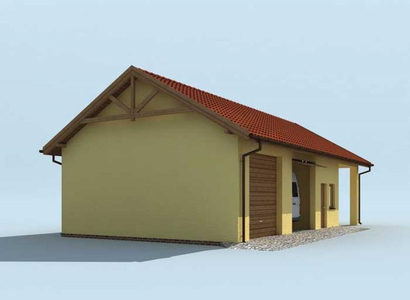 Budynek gospodarczy, wolnostojący. Projekt składa się z części architektonicznej, konstrukcyjnej i wewnętrznej instalacji elektrycznej. W projekcie załączone są podstawowe zestawienie stali, drewna i stolarki okienno-drzwiowej. Do projektu dołączamy bezpłatną zgodę na wprowadzenie zmian, oświadczenie projektantów o wykonaniu projektu zgodnie z obowiązującymi normami i przepisami oraz kserokopie uprawnień projektantów wraz z aktualnym wpisem do izby. W przypadku zamówienia projektu w technologii lekkiej, drewnianej konstrukcji szkieletowej, powierzchnia użytkowa budynku jest o około 7% większa.