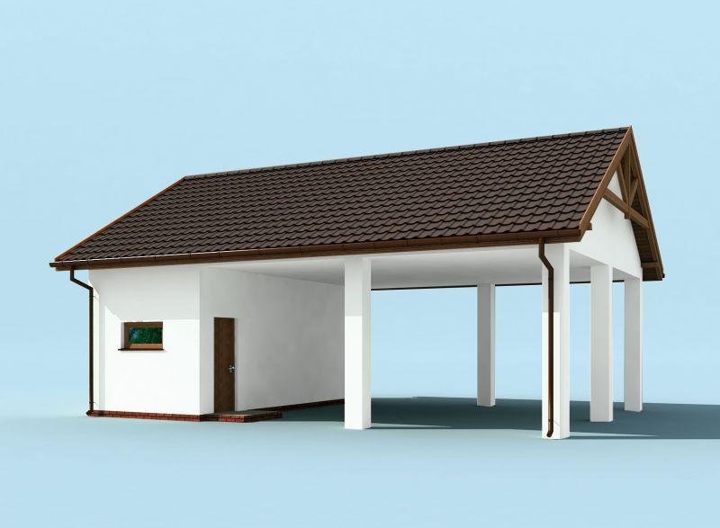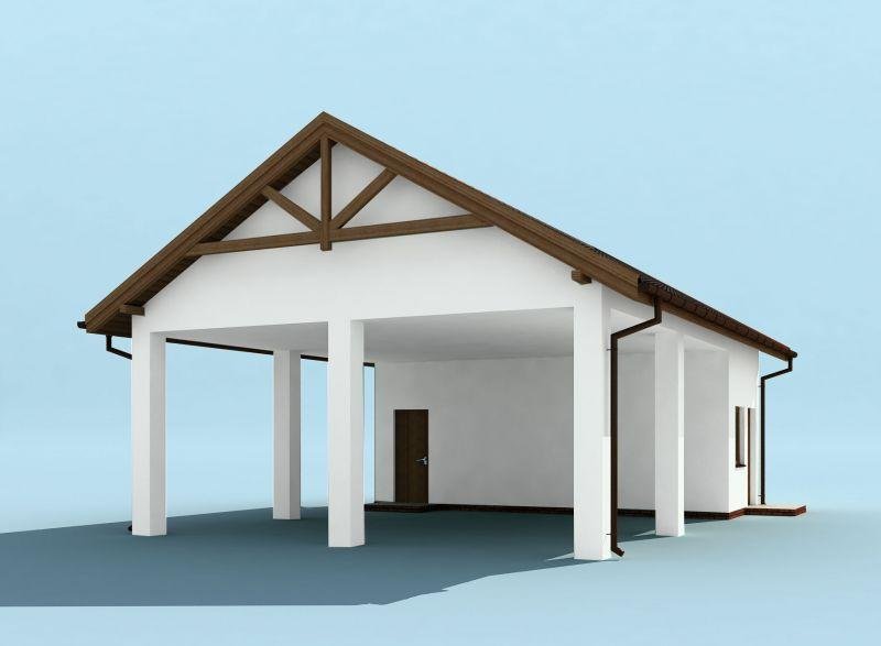 Budynek gospodarczy, wolnostojący. Projekt składa się z części architektonicznej, konstrukcyjnej i wewnętrznej instalacji elektrycznej. W projekcie załączone są podstawowe zestawienie stali, drewna i stolarki okienno-drzwiowej. Do projektu dołączamy bezpłatną zgodę na wprowadzenie zmian, oświadczenie projektantów o wykonaniu projektu zgodnie z obowiązującymi normami i przepisami oraz kserokopie uprawnień projektantów wraz z aktualnym wpisem do izby. W przypadku zamówienia projektu w technologii lekkiej, drewnianej konstrukcji szkieletowej, powierzchnia użytkowa budynku jest o około 7% większa.