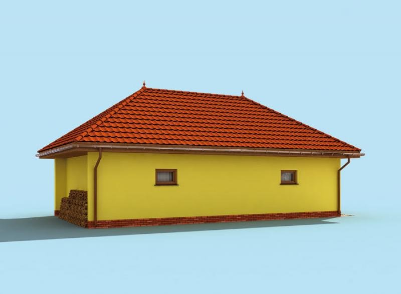Budynek gospodarczy, wolnostojący. Projekt składa się z części architektonicznej, konstrukcyjnej i wewnętrznej instalacji elektrycznej. W projekcie załączone są podstawowe zestawienie stali, drewna i stolarki okienno-drzwiowej. Do projektu dołączamy bezpłatną zgodę na wprowadzenie zmian, oświadczenie projektantów o wykonaniu projektu zgodnie z obowiązującymi normami i przepisami oraz kserokopie uprawnień projektantów wraz z aktualnym wpisem do izby. W przypadku zamówienia projektu w technologii lekkiej, drewnianej konstrukcji szkieletowej, powierzchnia użytkowa budynku jest o około 7% większa.