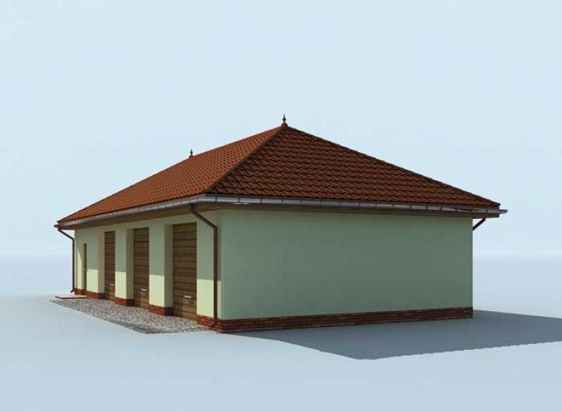 Budynek gospodarczy, wolnostojący. Projekt składa się z części architektonicznej, konstrukcyjnej i wewnętrznej instalacji elektrycznej. W projekcie załączone są podstawowe zestawienie stali, drewna i stolarki okienno-drzwiowej. Do projektu dołączamy bezpłatną zgodę na wprowadzenie zmian, oświadczenie projektantów o wykonaniu projektu zgodnie z obowiązującymi normami i przepisami oraz kserokopie uprawnień projektantów wraz z aktualnym wpisem do izby. W przypadku zamówienia projektu w technologii lekkiej, drewnianej konstrukcji szkieletowej, powierzchnia użytkowa budynku jest o około 7% większa.