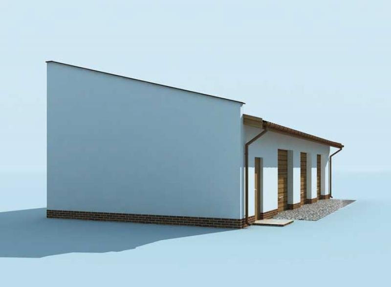 Budynek gospodarczy, wolnostojący. Projekt składa się z części architektonicznej, konstrukcyjnej i wewnętrznej instalacji elektrycznej. W projekcie załączone są podstawowe zestawienie stali, drewna i stolarki okienno-drzwiowej. Do projektu dołączamy bezpłatną zgodę na wprowadzenie zmian, oświadczenie projektantów o wykonaniu projektu zgodnie z obowiązującymi normami i przepisami oraz kserokopie uprawnień projektantów wraz z aktualnym wpisem do izby. W przypadku zamówienia projektu w technologii lekkiej, drewnianej konstrukcji szkieletowej, powierzchnia użytkowa budynku jest o około 7% większa.
