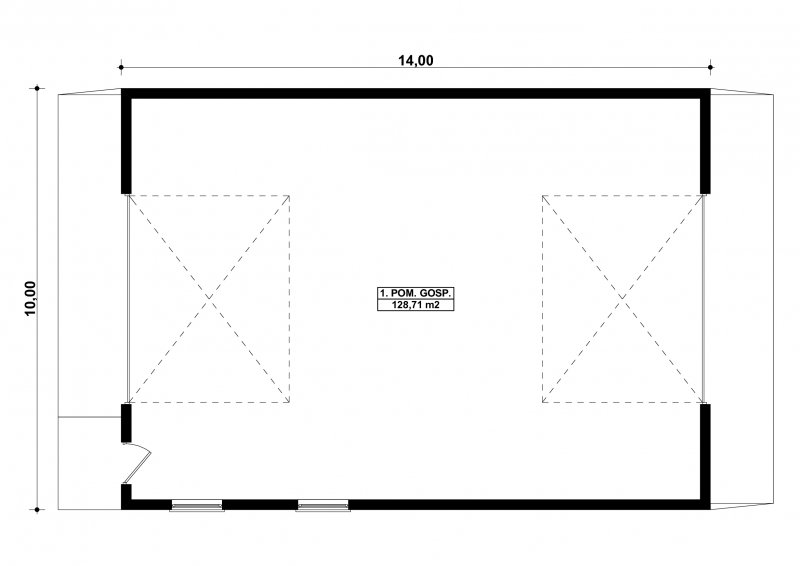 Projekt budynku gospodarczego, parterowego, niepodpiwniczonego. Do projektu dołączone jest zestawienie: stali, więźby dachowej oraz stolarki drzwiowej i okiennej, jak równieżbezpłatna zgoda na dokonanie zmian.