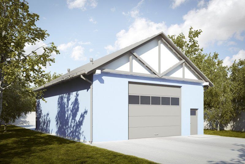 Budynek wykonany w technologii tradycyjnej. Ściany murowane z bloczków z betonu komórkowego grubości 24cm. Brama o wymiarach 5,00x3,80m. Więźba dachowa dwuspadowa, drewniana, pokryta blachą trapezową.