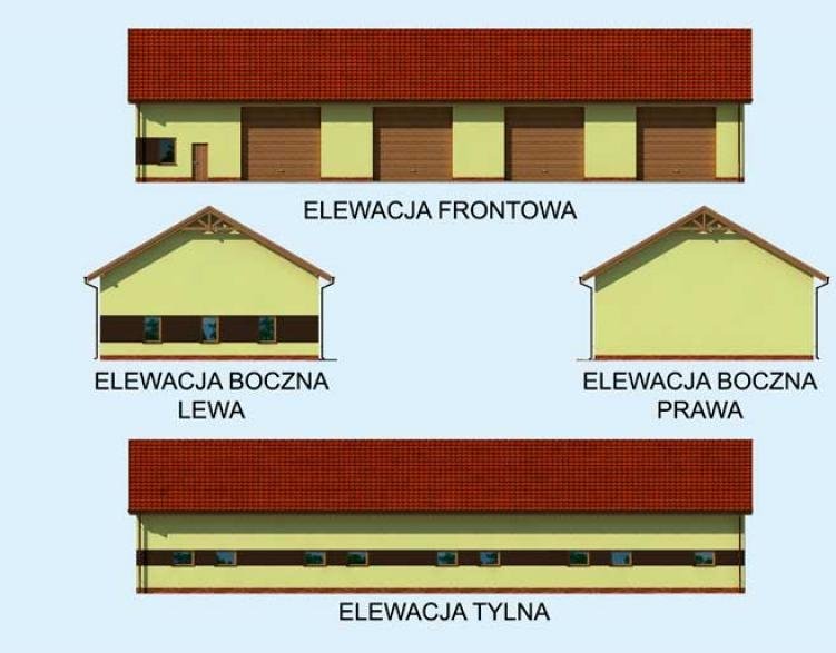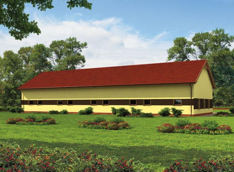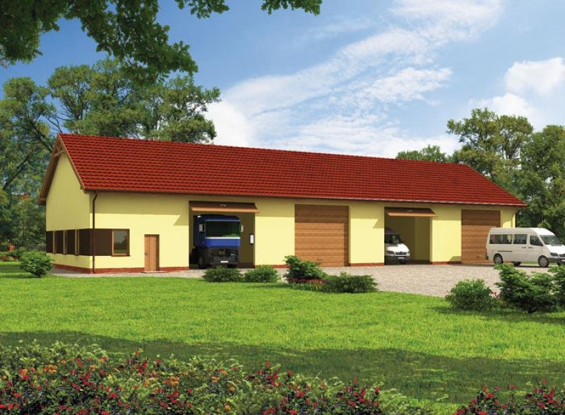 Budynek gospodarczy, wolnostojący. Projekt składa się z części architektonicznej, konstrukcyjnej i wewnętrznej instalacji elektrycznej. W projekcie załączone są podstawowe zestawienie stali, drewna i stolarki okienno-drzwiowej. Do projektu dołączamy bezpłatną zgodę na wprowadzenie zmian, oświadczenie projektantów o wykonaniu projektu zgodnie z obowiązującymi normami i przepisami oraz kserokopie uprawnień projektantów wraz z aktualnym wpisem do izby. W przypadku zamówienia projektu w technologii lekkiej, drewnianej konstrukcji szkieletowej, powierzchnia użytkowa budynku jest o około 7% większa.