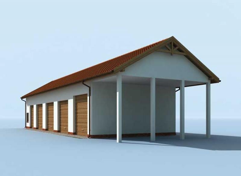 Budynek gospodarczy, wolnostojący. Projekt składa się z części architektonicznej, konstrukcyjnej i wewnętrznej instalacji elektrycznej. W projekcie załączone są podstawowe zestawienie stali, drewna i stolarki okienno-drzwiowej. Do projektu dołączamy bezpłatną zgodę na wprowadzenie zmian, oświadczenie projektantów o wykonaniu projektu zgodnie z obowiązującymi normami i przepisami oraz kserokopie uprawnień projektantów wraz z aktualnym wpisem do izby. W przypadku zamówienia projektu w technologii lekkiej, drewnianej konstrukcji szkieletowej, powierzchnia użytkowa budynku jest o około 7% większa.