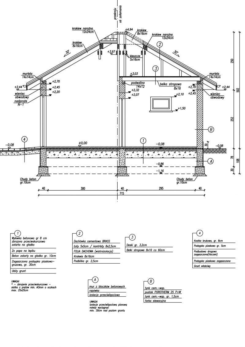 Technologia tradycyjna , ściany murowane grubości 25 cm. Konstrukcja więźby dachowej drewniana, pokrycie dachówka ceramiczna. Projekt garażu składa się z czterech egzemplarzy a w tym części architektonicznej, konstrukcyjnej i instalacji wewnętrznej elektrycznej. W projekcie załączone są podstawowe zestawienie stali, drewna i stolarki okienno-drzwiowej. Do projektu dołączamy bezpłatną zgodę na wprowadzenie zmian, oświadczenie projektantów o wykonaniu projektu zgodnie z obowiązującymi normami i przepisami oraz kserokopie uprawnień projektantów wraz z aktualnym wpisem do izby.