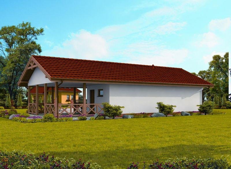 Budynek gospodarczy, wolnostojący. Projekt składa się z części architektonicznej, konstrukcyjnej i wewnętrznej instalacji elektrycznej. W projekcie załączone są podstawowe zestawienie stali, drewna i stolarki okienno-drzwiowej. Do projektu dołączamy bezpłatną zgodę na wprowadzenie zmian, oświadczenie projektantów o wykonaniu projektu zgodnie z obowiązującymi normami i przepisami oraz kserokopie uprawnień projektantów wraz z aktualnym wpisem do izby. W przypadku zamówienia projektu w technologii lekkiej, drewnianej konstrukcji szkieletowej, powierzchnia użytkowa budynku jest o około 7% większa.