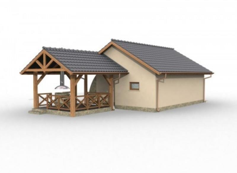 Budynek gospodarczy, wolnostojący. Projekt składa się z części architektonicznej, konstrukcyjnej i wewnętrznej instalacji elektrycznej. W projekcie załączone są podstawowe zestawienie stali, drewna i stolarki okienno-drzwiowej. Do projektu dołączamy bezpłatną zgodę na wprowadzenie zmian, oświadczenie projektantów o wykonaniu projektu zgodnie z obowiązującymi normami i przepisami oraz kserokopie uprawnień projektantów wraz z aktualnym wpisem do izby. W przypadku zamówienia projektu w technologii lekkiej, drewnianej konstrukcji szkieletowej, powierzchnia użytkowa budynku jest o około 7% większa.