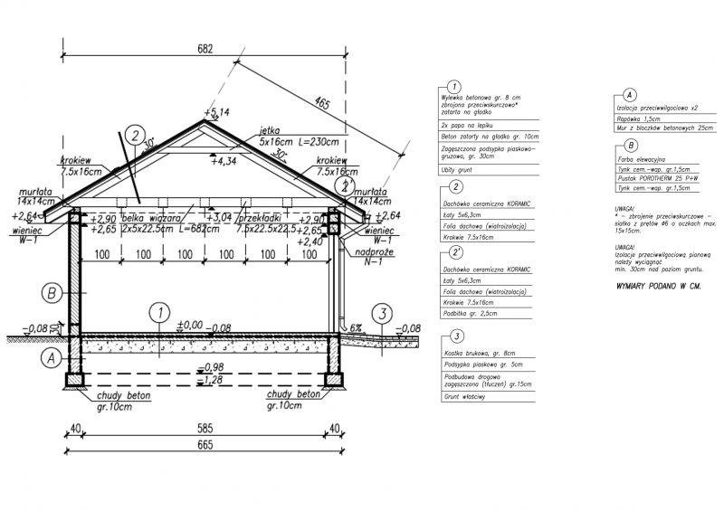 - ściany zewnętrzne nośne murowane grubości 25cm