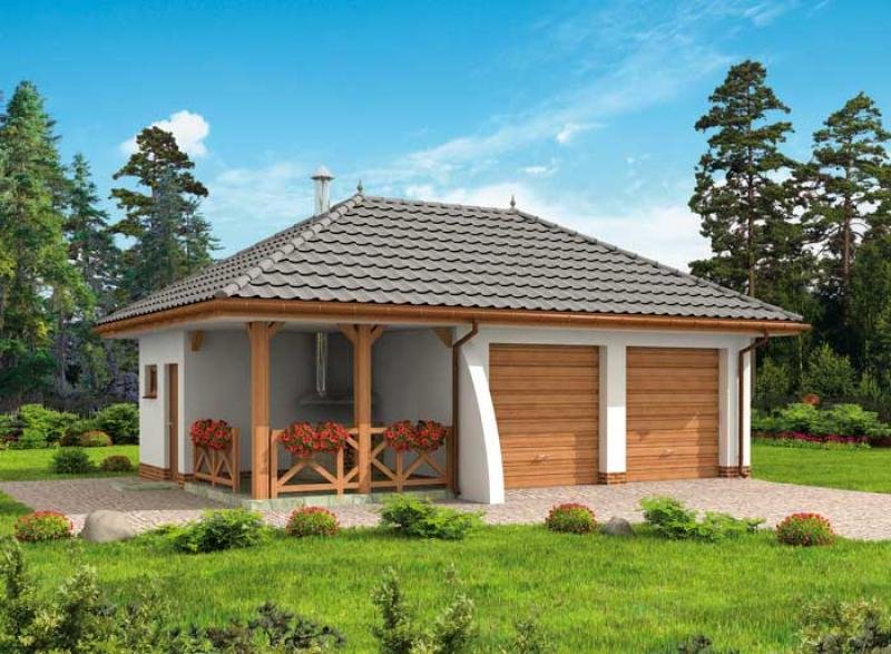 Budynek gospodarczy, wolnostojący. Projekt składa się z części architektonicznej, konstrukcyjnej i wewnętrznej instalacji elektrycznej. W projekcie załączone są podstawowe zestawienie stali, drewna i stolarki okienno-drzwiowej. Do projektu dołączamy bezpłatną zgodę na wprowadzenie zmian, oświadczenie projektantów o wykonaniu projektu zgodnie z obowiązującymi normami i przepisami oraz kserokopie uprawnień projektantów wraz z aktualnym wpisem do izby. W przypadku zamówienia projektu w technologii lekkiej, drewnianej konstrukcji szkieletowej, powierzchnia użytkowa budynku jest o około 7% większa.