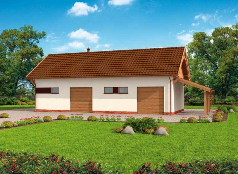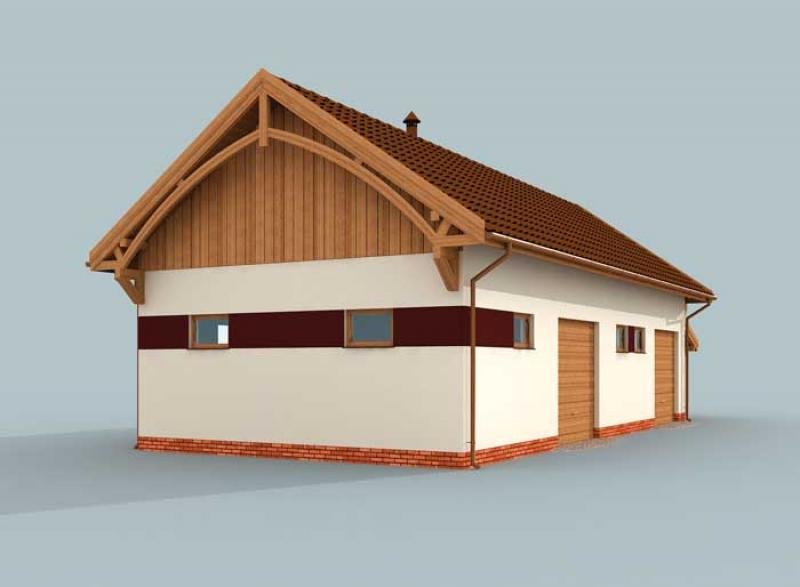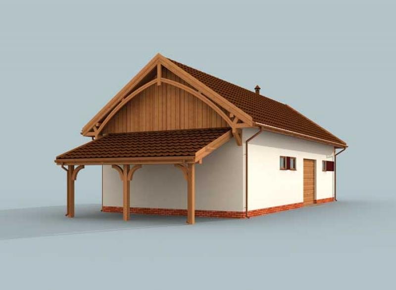 Budynek gospodarczy, wolnostojący. Projekt składa się z części architektonicznej, konstrukcyjnej i wewnętrznej instalacji elektrycznej. W projekcie załączone są podstawowe zestawienie stali, drewna i stolarki okienno-drzwiowej. Do projektu dołączamy bezpłatną zgodę na wprowadzenie zmian, oświadczenie projektantów o wykonaniu projektu zgodnie z obowiązującymi normami i przepisami oraz kserokopie uprawnień projektantów wraz z aktualnym wpisem do izby. W przypadku zamówienia projektu w technologii lekkiej, drewnianej konstrukcji szkieletowej, powierzchnia użytkowa budynku jest o około 7% większa.