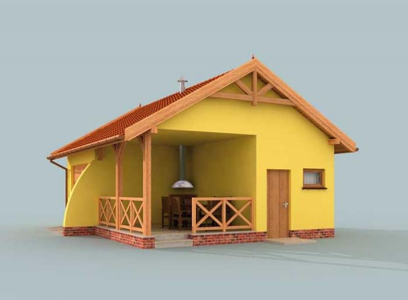Budynek gospodarczy, wolnostojący. Projekt składa się z części architektonicznej, konstrukcyjnej i wewnętrznej instalacji elektrycznej. W projekcie załączone są podstawowe zestawienie stali, drewna i stolarki okienno-drzwiowej. Do projektu dołączamy bezpłatną zgodę na wprowadzenie zmian, oświadczenie projektantów o wykonaniu projektu zgodnie z obowiązującymi normami i przepisami oraz kserokopie uprawnień projektantów wraz z aktualnym wpisem do izby. W przypadku zamówienia projektu w technologii lekkiej, drewnianej konstrukcji szkieletowej, powierzchnia użytkowa budynku jest o około 7% większa.