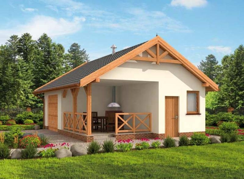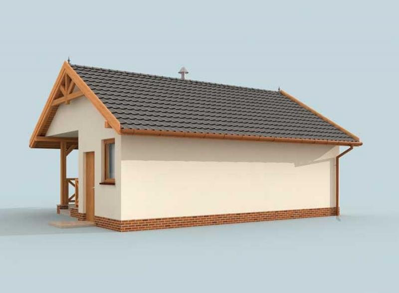 Budynek gospodarczy, wolnostojący. Projekt składa się z części architektonicznej, konstrukcyjnej i wewnętrznej instalacji elektrycznej. W projekcie załączone są podstawowe zestawienie stali, drewna i stolarki okienno-drzwiowej. Do projektu dołączamy bezpłatną zgodę na wprowadzenie zmian, oświadczenie projektantów o wykonaniu projektu zgodnie z obowiązującymi normami i przepisami oraz kserokopie uprawnień projektantów wraz z aktualnym wpisem do izby. W przypadku zamówienia projektu w technologii lekkiej, drewnianej konstrukcji szkieletowej, powierzchnia użytkowa budynku jest o około 7% większa.