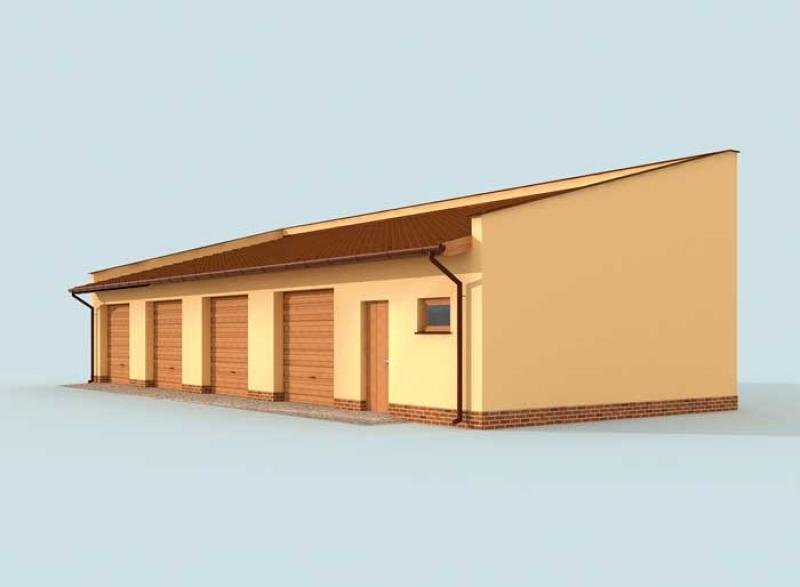 Budynek gospodarczy, wolnostojący. Projekt składa się z części architektonicznej, konstrukcyjnej i wewnętrznej instalacji elektrycznej. W projekcie załączone są podstawowe zestawienie stali, drewna i stolarki okienno-drzwiowej. Do projektu dołączamy bezpłatną zgodę na wprowadzenie zmian, oświadczenie projektantów o wykonaniu projektu zgodnie z obowiązującymi normami i przepisami oraz kserokopie uprawnień projektantów wraz z aktualnym wpisem do izby. W przypadku zamówienia projektu w technologii lekkiej, drewnianej konstrukcji szkieletowej, powierzchnia użytkowa budynku jest o około 7% większa.