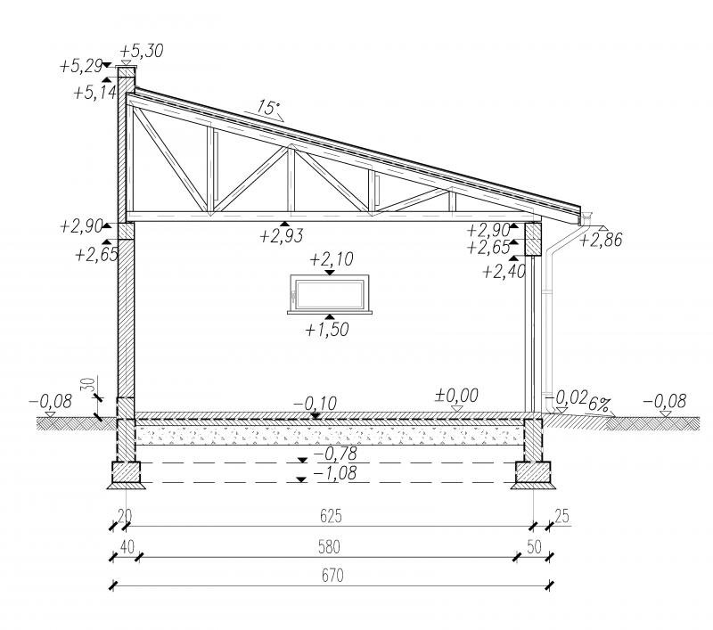 Budynek gospodarczy, wolnostojący. Projekt składa się z części architektonicznej, konstrukcyjnej i wewnętrznej instalacji elektrycznej. W projekcie załączone są podstawowe zestawienie stali, drewna i stolarki okienno-drzwiowej. Do projektu dołączamy bezpłatną zgodę na wprowadzenie zmian, oświadczenie projektantów o wykonaniu projektu zgodnie z obowiązującymi normami i przepisami oraz kserokopie uprawnień projektantów wraz z aktualnym wpisem do izby. W przypadku zamówienia projektu w technologii lekkiej, drewnianej konstrukcji szkieletowej, powierzchnia użytkowa budynku jest o około 7% większa.