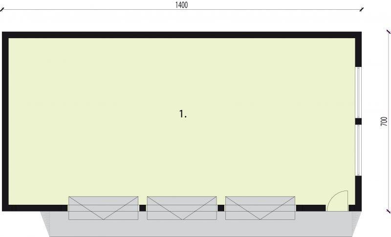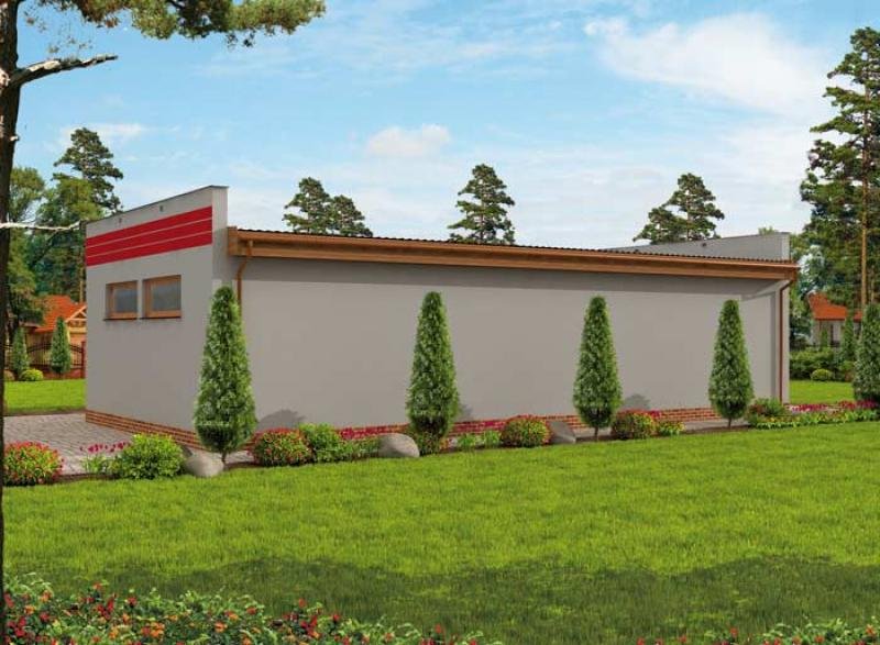 Budynek gospodarczy, wolnostojący. Projekt składa się z części architektonicznej, konstrukcyjnej i wewnętrznej instalacji elektrycznej. W projekcie załączone są podstawowe zestawienie stali, drewna i stolarki okienno-drzwiowej. Do projektu dołączamy bezpłatną zgodę na wprowadzenie zmian, oświadczenie projektantów o wykonaniu projektu zgodnie z obowiązującymi normami i przepisami oraz kserokopie uprawnień projektantów wraz z aktualnym wpisem do izby. W przypadku zamówienia projektu w technologii lekkiej, drewnianej konstrukcji szkieletowej, powierzchnia użytkowa budynku jest o około 7% większa.