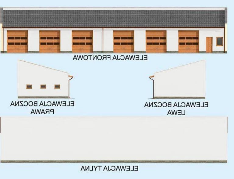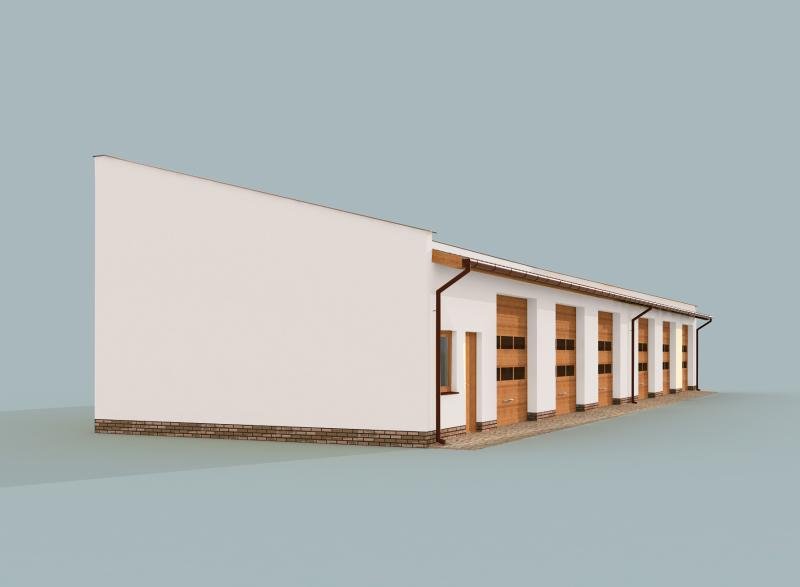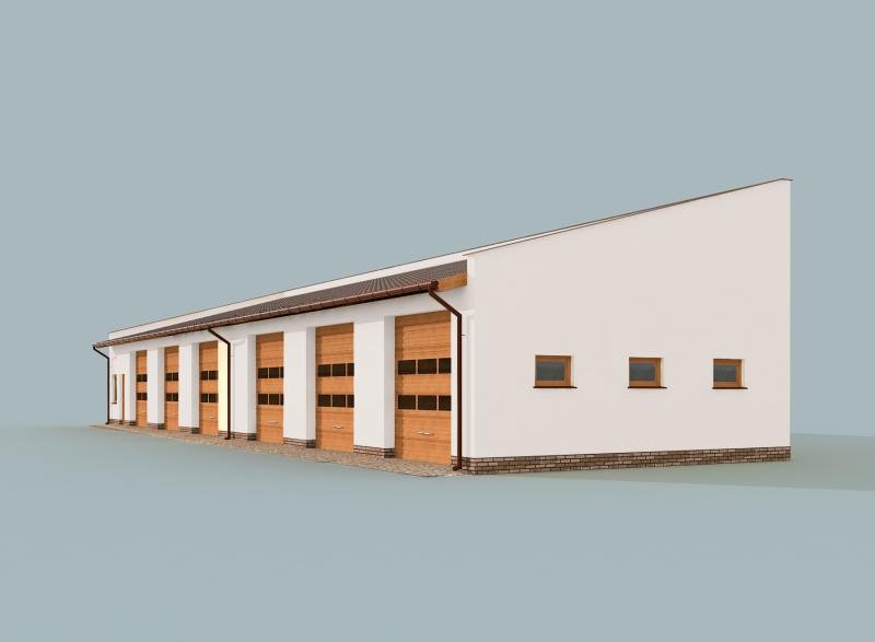 Budynek gospodarczy, wolnostojący. Projekt składa się z części architektonicznej, konstrukcyjnej i wewnętrznej instalacji elektrycznej. W projekcie załączone są podstawowe zestawienie stali, drewna i stolarki okienno-drzwiowej. Do projektu dołączamy bezpłatną zgodę na wprowadzenie zmian, oświadczenie projektantów o wykonaniu projektu zgodnie z obowiązującymi normami i przepisami oraz kserokopie uprawnień projektantów wraz z aktualnym wpisem do izby. W przypadku zamówienia projektu w technologii lekkiej, drewnianej konstrukcji szkieletowej, powierzchnia użytkowa budynku jest o około 7% większa.