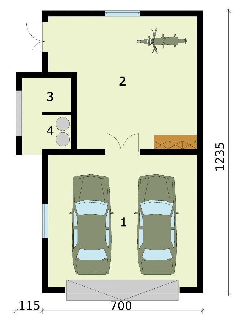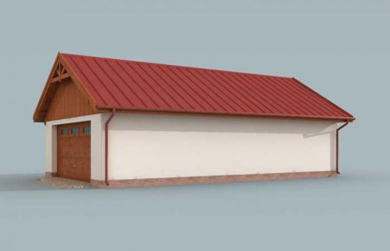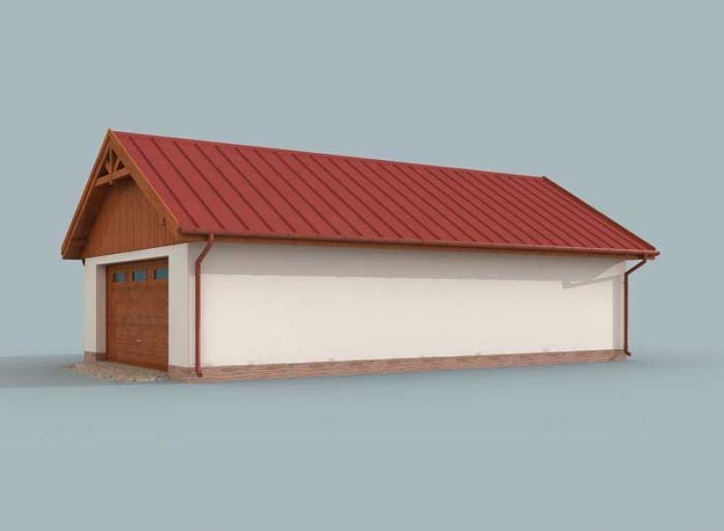 Budynek gospodarczy, wolnostojący. Projekt składa się z części architektonicznej, konstrukcyjnej i wewnętrznej instalacji elektrycznej. W projekcie załączone są podstawowe zestawienie stali, drewna i stolarki okienno-drzwiowej. Do projektu dołączamy bezpłatną zgodę na wprowadzenie zmian, oświadczenie projektantów o wykonaniu projektu zgodnie z obowiązującymi normami i przepisami oraz kserokopie uprawnień projektantów wraz z aktualnym wpisem do izby. W przypadku zamówienia projektu w technologii lekkiej, drewnianej konstrukcji szkieletowej, powierzchnia użytkowa budynku jest o około 7% większa.