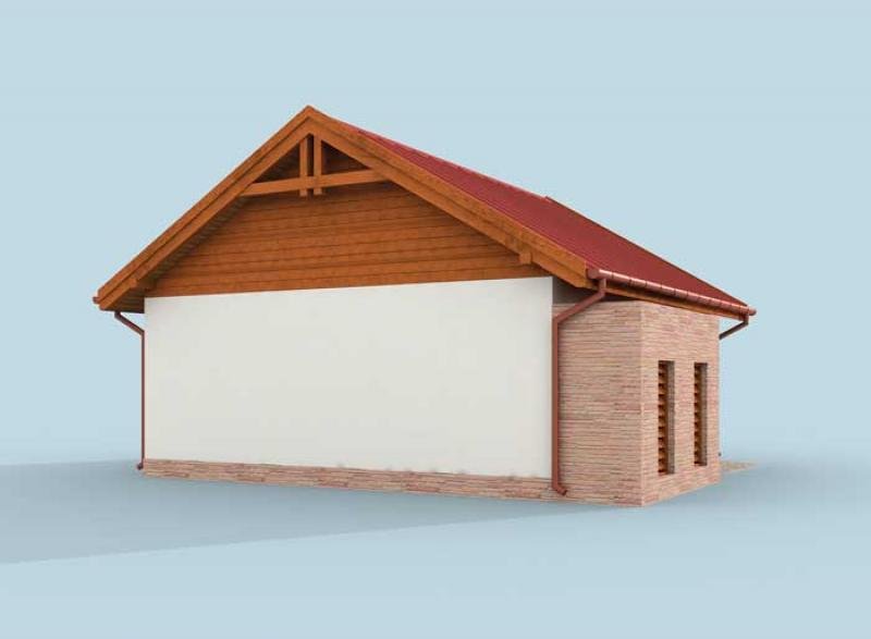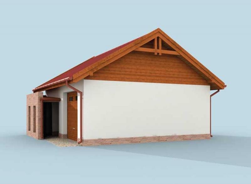Budynek gospodarczy, wolnostojący. Projekt składa się z części architektonicznej, konstrukcyjnej i wewnętrznej instalacji elektrycznej. W projekcie załączone są podstawowe zestawienie stali, drewna i stolarki okienno-drzwiowej. Do projektu dołączamy bezpłatną zgodę na wprowadzenie zmian, oświadczenie projektantów o wykonaniu projektu zgodnie z obowiązującymi normami i przepisami oraz kserokopie uprawnień projektantów wraz z aktualnym wpisem do izby. W przypadku zamówienia projektu w technologii lekkiej, drewnianej konstrukcji szkieletowej, powierzchnia użytkowa budynku jest o około 7% większa.