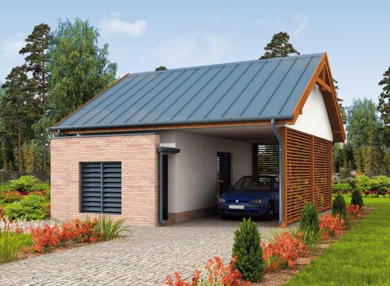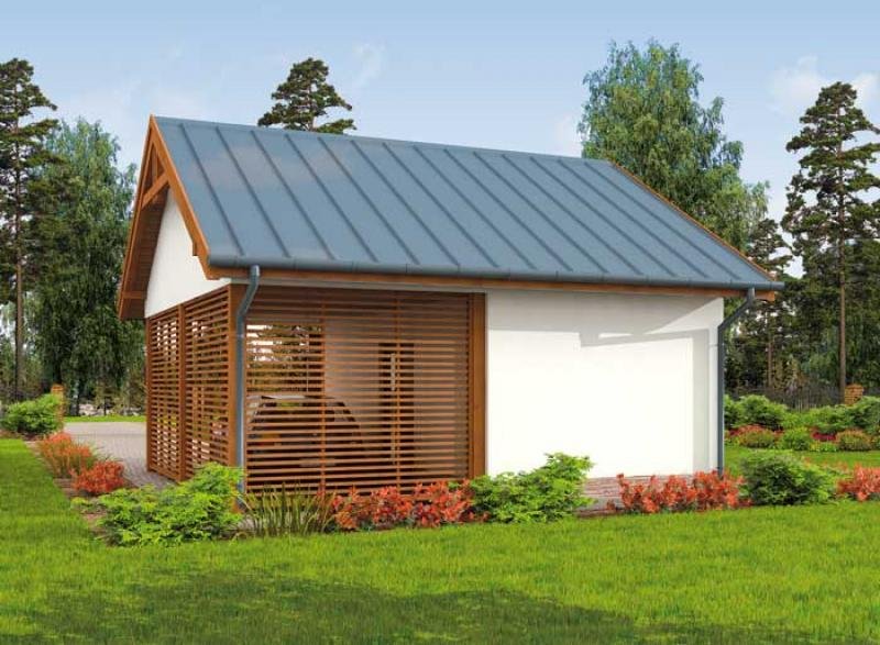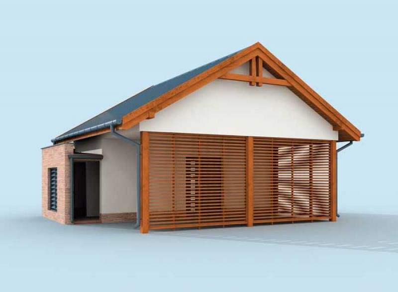Budynek gospodarczy, wolnostojący. Projekt składa się z części architektonicznej, konstrukcyjnej i wewnętrznej instalacji elektrycznej. W projekcie załączone są podstawowe zestawienie stali, drewna i stolarki okienno-drzwiowej. Do projektu dołączamy bezpłatną zgodę na wprowadzenie zmian, oświadczenie projektantów o wykonaniu projektu zgodnie z obowiązującymi normami i przepisami oraz kserokopie uprawnień projektantów wraz z aktualnym wpisem do izby. W przypadku zamówienia projektu w technologii lekkiej, drewnianej konstrukcji szkieletowej, powierzchnia użytkowa budynku jest o około 7% większa.