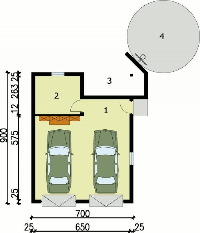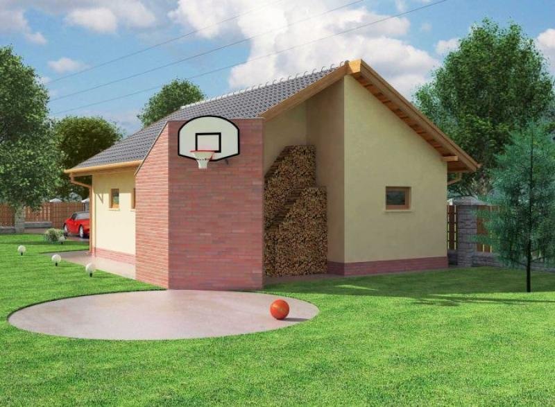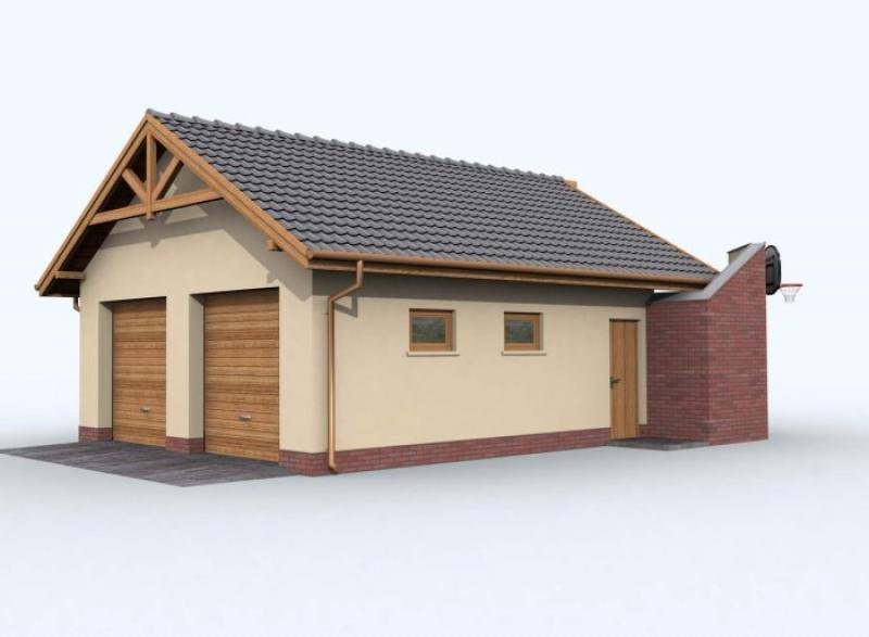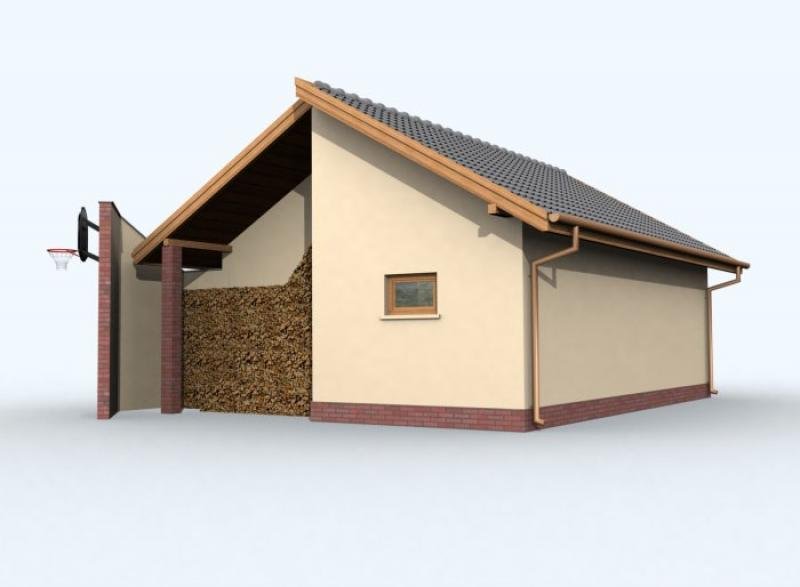 Budynek gospodarczy, wolnostojący. Projekt składa się z części architektonicznej, konstrukcyjnej i wewnętrznej instalacji elektrycznej. W projekcie załączone są podstawowe zestawienie stali, drewna i stolarki okienno-drzwiowej. Do projektu dołączamy bezpłatną zgodę na wprowadzenie zmian, oświadczenie projektantów o wykonaniu projektu zgodnie z obowiązującymi normami i przepisami oraz kserokopie uprawnień projektantów wraz z aktualnym wpisem do izby. W przypadku zamówienia projektu w technologii lekkiej, drewnianej konstrukcji szkieletowej, powierzchnia użytkowa budynku jest o około 7% większa.