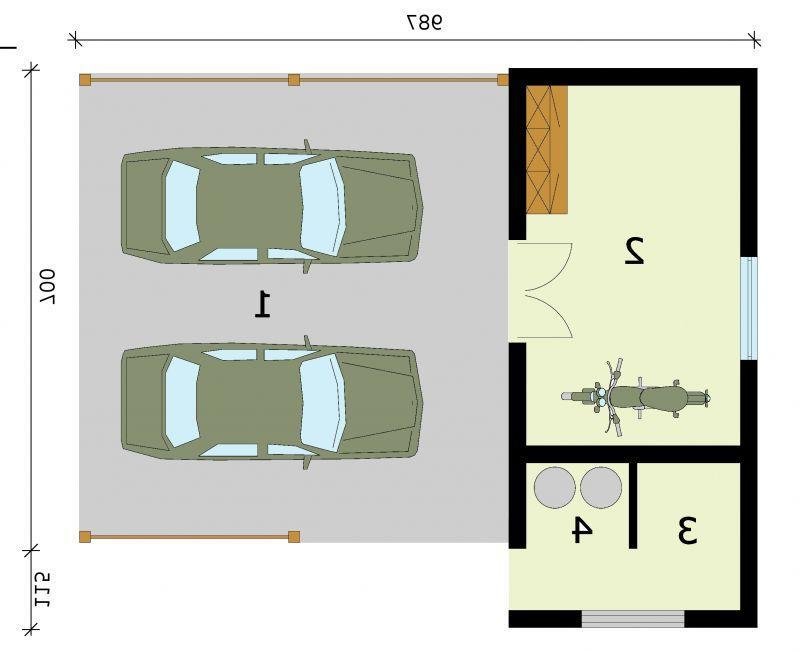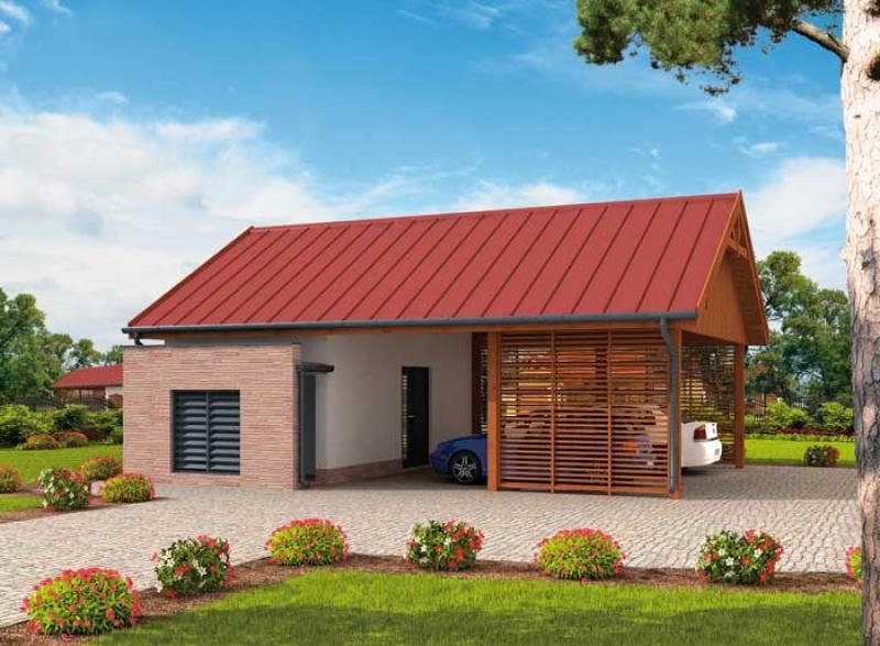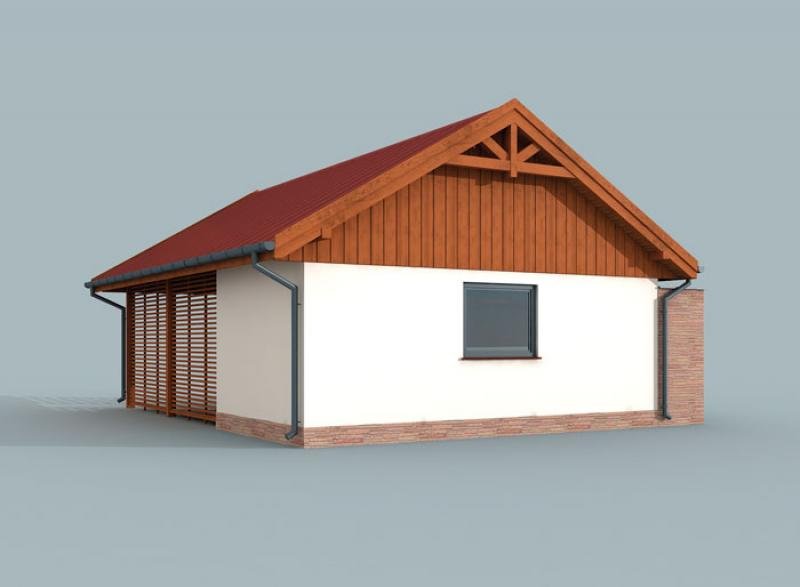 Budynek gospodarczy, wolnostojący. Projekt składa się z części architektonicznej, konstrukcyjnej i wewnętrznej instalacji elektrycznej. W projekcie załączone są podstawowe zestawienie stali, drewna i stolarki okienno-drzwiowej. Do projektu dołączamy bezpłatną zgodę na wprowadzenie zmian, oświadczenie projektantów o wykonaniu projektu zgodnie z obowiązującymi normami i przepisami oraz kserokopie uprawnień projektantów wraz z aktualnym wpisem do izby. W przypadku zamówienia projektu w technologii lekkiej, drewnianej konstrukcji szkieletowej, powierzchnia użytkowa budynku jest o około 7% większa.