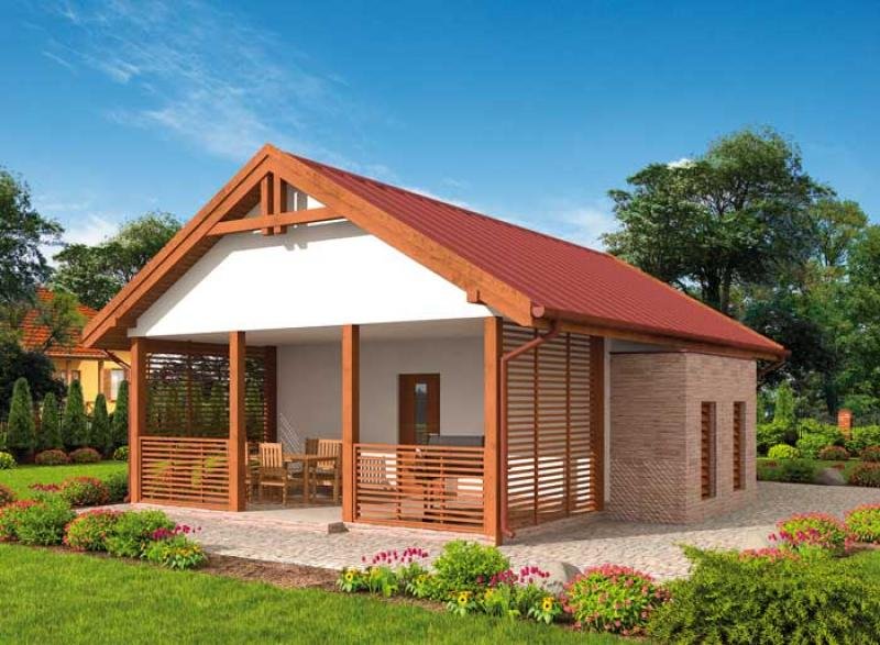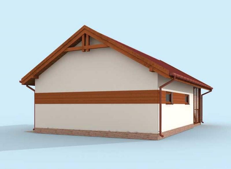 Budynek gospodarczy, wolnostojący. Projekt składa się z części architektonicznej, konstrukcyjnej i wewnętrznej instalacji elektrycznej. W projekcie załączone są podstawowe zestawienie stali, drewna i stolarki okienno-drzwiowej. Do projektu dołączamy bezpłatną zgodę na wprowadzenie zmian, oświadczenie projektantów o wykonaniu projektu zgodnie z obowiązującymi normami i przepisami oraz kserokopie uprawnień projektantów wraz z aktualnym wpisem do izby. W przypadku zamówienia projektu w technologii lekkiej, drewnianej konstrukcji szkieletowej, powierzchnia użytkowa budynku jest o około 7% większa.