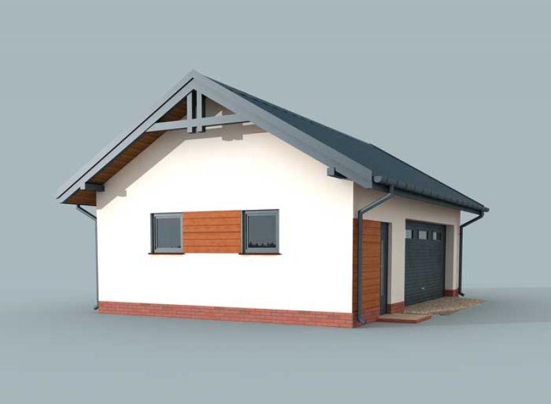 Budynek gospodarczy, wolnostojący. Projekt składa się z części architektonicznej, konstrukcyjnej i wewnętrznej instalacji elektrycznej. W projekcie załączone są podstawowe zestawienie stali, drewna i stolarki okienno-drzwiowej. Do projektu dołączamy bezpłatną zgodę na wprowadzenie zmian, oświadczenie projektantów o wykonaniu projektu zgodnie z obowiązującymi normami i przepisami oraz kserokopie uprawnień projektantów wraz z aktualnym wpisem do izby. W przypadku zamówienia projektu w technologii lekkiej, drewnianej konstrukcji szkieletowej, powierzchnia użytkowa budynku jest o około 7% większa.