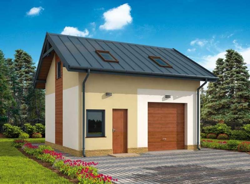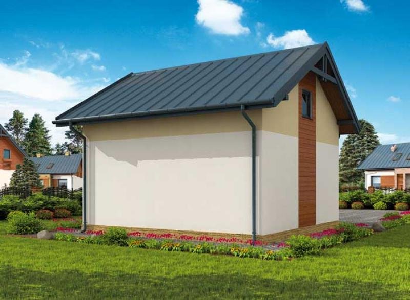 Budynek gospodarczy, wolnostojący. Projekt składa się z części architektonicznej, konstrukcyjnej i wewnętrznej instalacji elektrycznej. W projekcie załączone są podstawowe zestawienie stali, drewna i stolarki okienno-drzwiowej. Do projektu dołączamy bezpłatną zgodę na wprowadzenie zmian, oświadczenie projektantów o wykonaniu projektu zgodnie z obowiązującymi normami i przepisami oraz kserokopie uprawnień projektantów wraz z aktualnym wpisem do izby. W przypadku zamówienia projektu w technologii lekkiej, drewnianej konstrukcji szkieletowej, powierzchnia użytkowa budynku jest o około 7% większa.