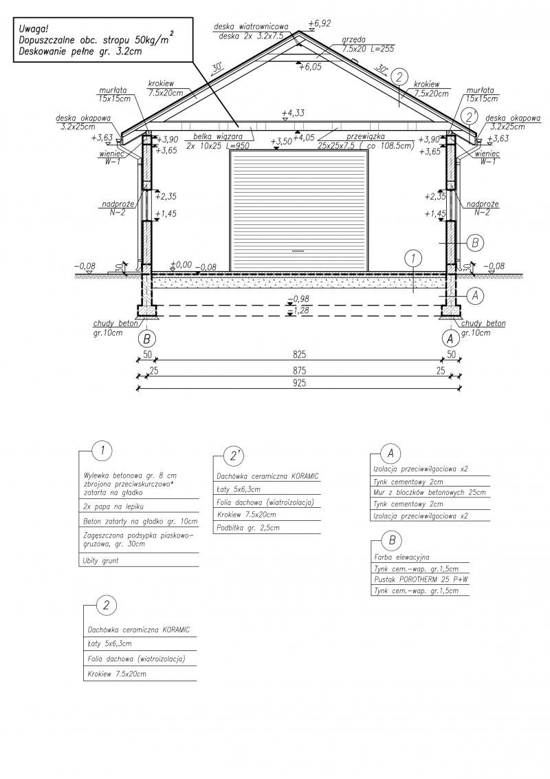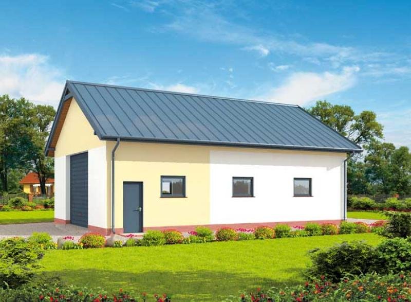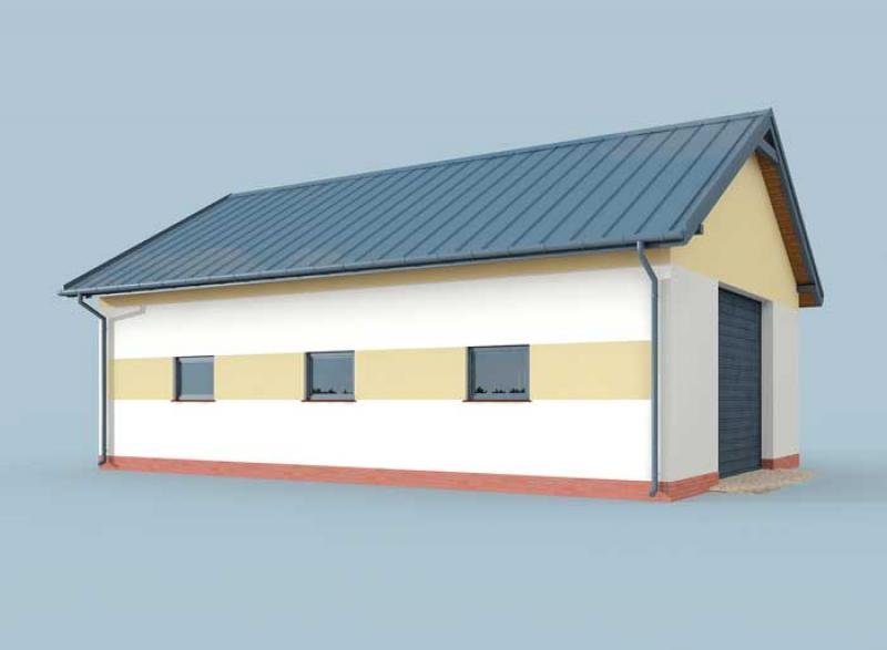 Budynek gospodarczy, wolnostojący. Projekt składa się z części architektonicznej, konstrukcyjnej i wewnętrznej instalacji elektrycznej. W projekcie załączone są podstawowe zestawienie stali, drewna i stolarki okienno-drzwiowej. Do projektu dołączamy bezpłatną zgodę na wprowadzenie zmian, oświadczenie projektantów o wykonaniu projektu zgodnie z obowiązującymi normami i przepisami oraz kserokopie uprawnień projektantów wraz z aktualnym wpisem do izby. W przypadku zamówienia projektu w technologii lekkiej, drewnianej konstrukcji szkieletowej, powierzchnia użytkowa budynku jest o około 7% większa.