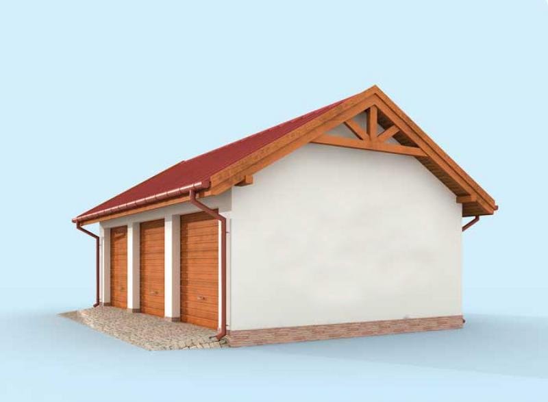 Budynek gospodarczy, wolnostojący. Projekt składa się z części architektonicznej, konstrukcyjnej i wewnętrznej instalacji elektrycznej. W projekcie załączone są podstawowe zestawienie stali, drewna i stolarki okienno-drzwiowej. Do projektu dołączamy bezpłatną zgodę na wprowadzenie zmian, oświadczenie projektantów o wykonaniu projektu zgodnie z obowiązującymi normami i przepisami oraz kserokopie uprawnień projektantów wraz z aktualnym wpisem do izby. W przypadku zamówienia projektu w technologii lekkiej, drewnianej konstrukcji szkieletowej, powierzchnia użytkowa budynku jest o około 7% większa.