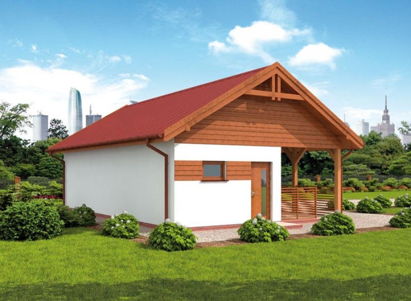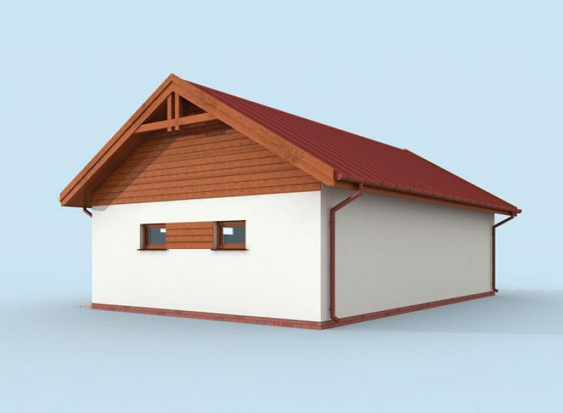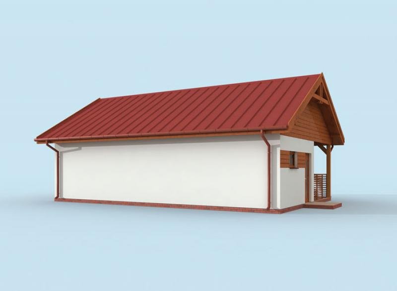 Budynek gospodarczy, wolnostojący. Projekt składa się z części architektonicznej, konstrukcyjnej i wewnętrznej instalacji elektrycznej. W projekcie załączone są podstawowe zestawienie stali, drewna i stolarki okienno-drzwiowej. Do projektu dołączamy bezpłatną zgodę na wprowadzenie zmian, oświadczenie projektantów o wykonaniu projektu zgodnie z obowiązującymi normami i przepisami oraz kserokopie uprawnień projektantów wraz z aktualnym wpisem do izby. W przypadku zamówienia projektu w technologii lekkiej, drewnianej konstrukcji szkieletowej, powierzchnia użytkowa budynku jest o około 7% większa.