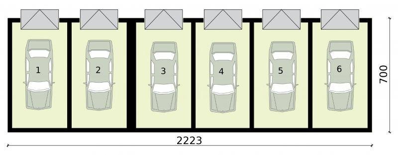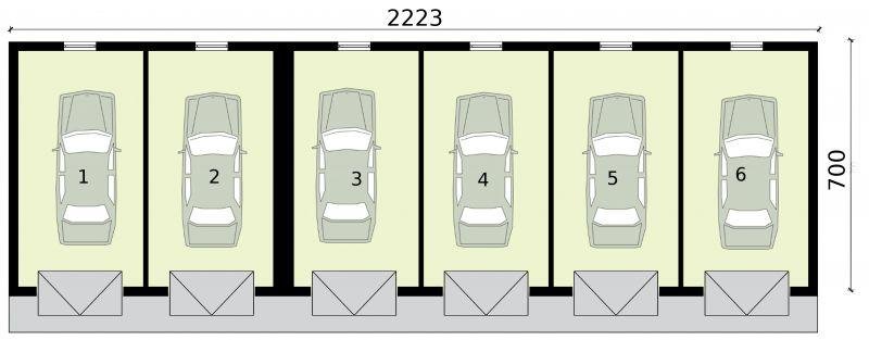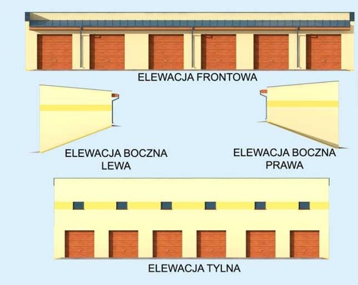 - wymiar bram garażowych 6x 2,4x2,2m i 6x 2,4x2,4m