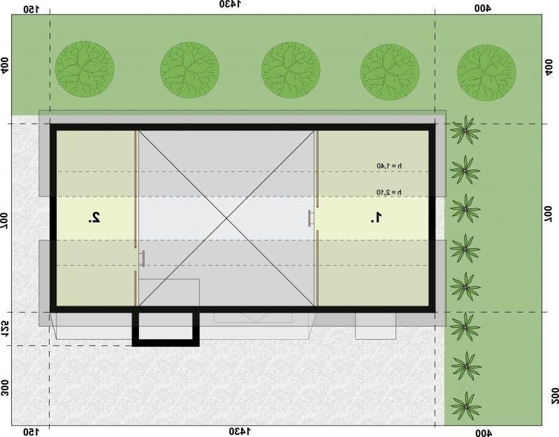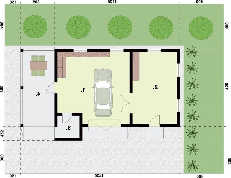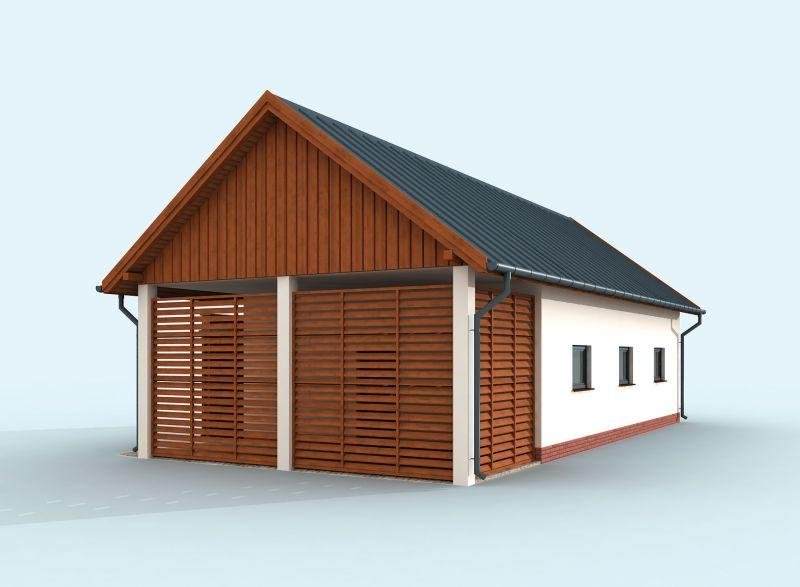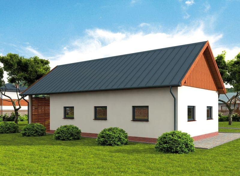 Budynek gospodarczy, wolnostojący. Projekt składa się z części architektonicznej, konstrukcyjnej i wewnętrznej instalacji elektrycznej. W projekcie załączone są podstawowe zestawienie stali, drewna i stolarki okienno-drzwiowej. Do projektu dołączamy bezpłatną zgodę na wprowadzenie zmian, oświadczenie projektantów o wykonaniu projektu zgodnie z obowiązującymi normami i przepisami oraz kserokopie uprawnień projektantów wraz z aktualnym wpisem do izby. W przypadku zamówienia projektu w technologii lekkiej, drewnianej konstrukcji szkieletowej, powierzchnia użytkowa budynku jest o około 7% większa.