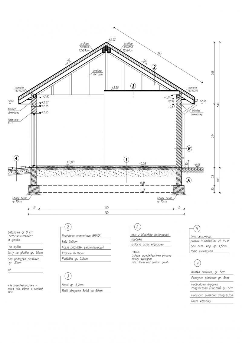 - pokrycie dachu dachówka cementowa bądź ceramiczna