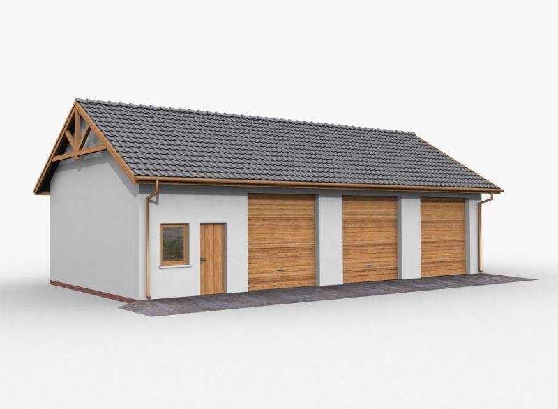 Budynek gospodarczy, wolnostojący. Projekt składa się z części architektonicznej, konstrukcyjnej i wewnętrznej instalacji elektrycznej. W projekcie załączone są podstawowe zestawienie stali, drewna i stolarki okienno-drzwiowej. Do projektu dołączamy bezpłatną zgodę na wprowadzenie zmian, oświadczenie projektantów o wykonaniu projektu zgodnie z obowiązującymi normami i przepisami oraz kserokopie uprawnień projektantów wraz z aktualnym wpisem do izby. W przypadku zamówienia projektu w technologii lekkiej, drewnianej konstrukcji szkieletowej, powierzchnia użytkowa budynku jest o około 7% większa.