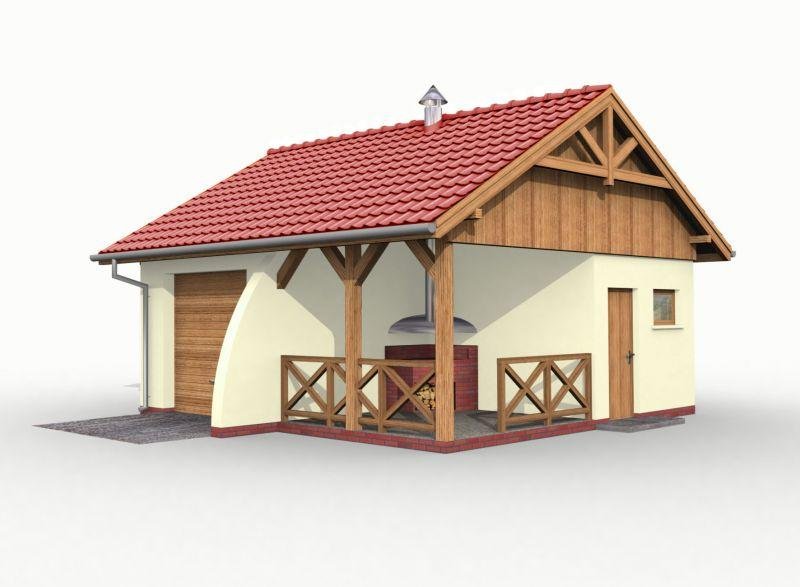 Budynek gospodarczy, wolnostojący. Projekt składa się z części architektonicznej, konstrukcyjnej i wewnętrznej instalacji elektrycznej. W projekcie załączone są podstawowe zestawienie stali, drewna i stolarki okienno-drzwiowej. Do projektu dołączamy bezpłatną zgodę na wprowadzenie zmian, oświadczenie projektantów o wykonaniu projektu zgodnie z obowiązującymi normami i przepisami oraz kserokopie uprawnień projektantów wraz z aktualnym wpisem do izby. W przypadku zamówienia projektu w technologii lekkiej, drewnianej konstrukcji szkieletowej, powierzchnia użytkowa budynku jest o około 7% większa.