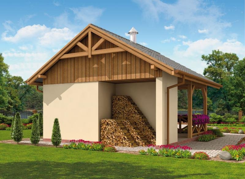 Budynek gospodarczy, wolnostojący, parterowy z pom. gospodarczym, altana ogrodową z grillem i składem na drewno kominkowe.
