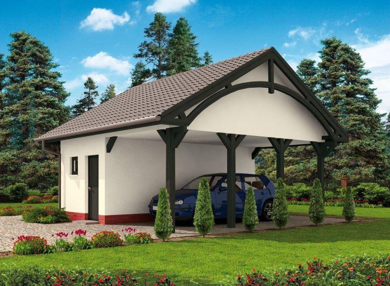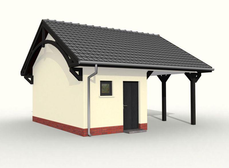 Wiata garażowa z pomieszczeniem gospodarczym w technologii szkieletowej, wolnostojący.