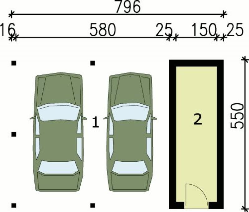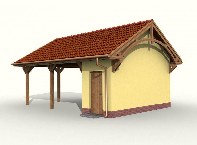 Budynek gospodarczy, wolnostojący. Projekt składa się z części architektonicznej, konstrukcyjnej i wewnętrznej instalacji elektrycznej. W projekcie załączone są podstawowe zestawienie stali, drewna i stolarki okienno-drzwiowej. Do projektu dołączamy bezpłatną zgodę na wprowadzenie zmian, oświadczenie projektantów o wykonaniu projektu zgodnie z obowiązującymi normami i przepisami oraz kserokopie uprawnień projektantów wraz z aktualnym wpisem do izby. W przypadku zamówienia projektu w technologii lekkiej, drewnianej konstrukcji szkieletowej, powierzchnia użytkowa budynku jest o około 7% większa.